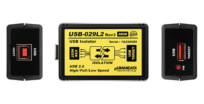 USB-029L2 is a USB 2.0 High Speed (480Mbps), Full Speed (12Mbps) and Low Speed (1.5Mbps) compliant isolator which isolates between a USB host and a USB peripheral device with 3000VDC. With USB-029L2, it can be expected to eliminate ground loops that can cause measurement errors and equipment from surges, common-mode voltage, static discharge, magnetic fields, and radio frequency interference. There is no need to install any drivers. It works with every operating system such as Windows, Linux, Mac OS X.
