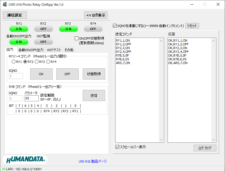 LAN経由で遠隔地のPhotoリレーのON/OFF出力が可能