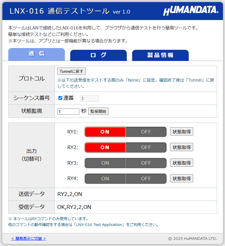 付属のアプリケーション LNX-016 Photo Relay CtrlApp を利用してPhotoリレーを制御できます。