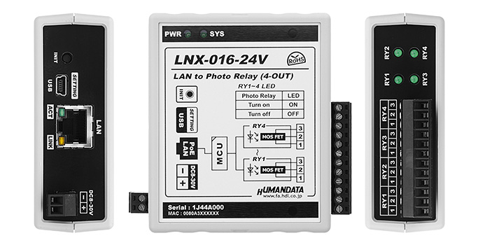 [LNX-016-24V] LAN Photoリレー(4出力・ワイド電源)