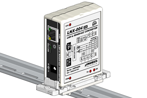 LNX-004は、LANからRS-485/RS-422を使うことができるLANコンバータです。インタフェースコネクタとしてD-Sub9ピンを採用しています。RS-485/RS-422側は絶縁されています。LANは元々絶縁されているので二重絶縁となります。